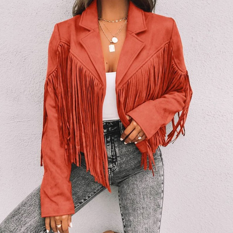 • Estilo: jaqueta com babado terracota